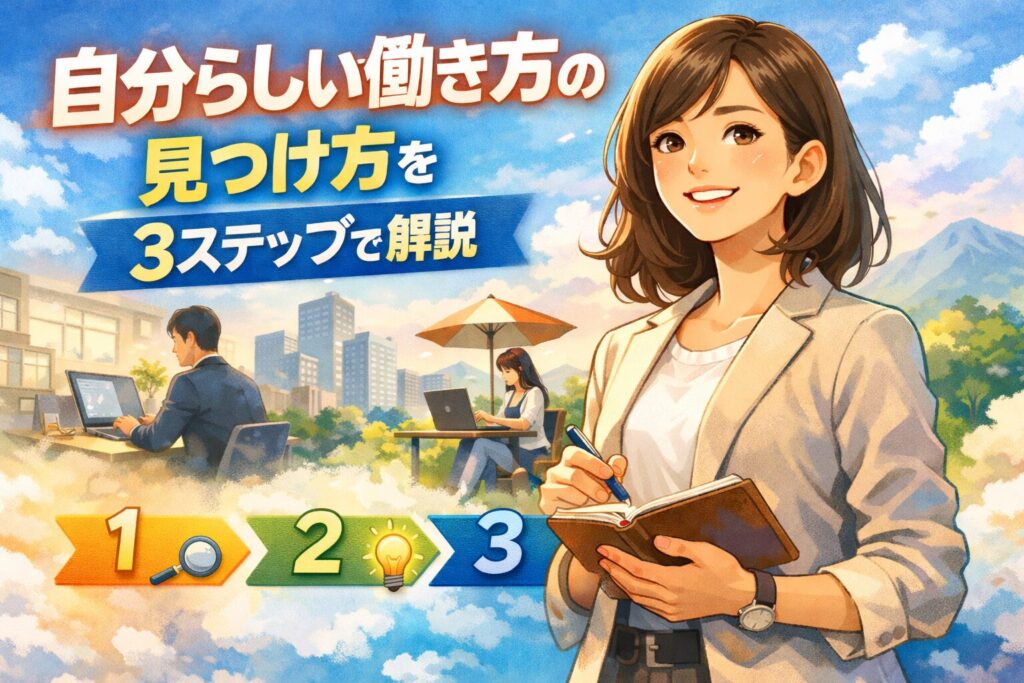 自分らしい働き方の見つけ方を3ステップで解説。価値観・強み・働き方の種類を比較し、社会人が自分に合う働き方を判断できる方法をわかりやすく紹介。 -
