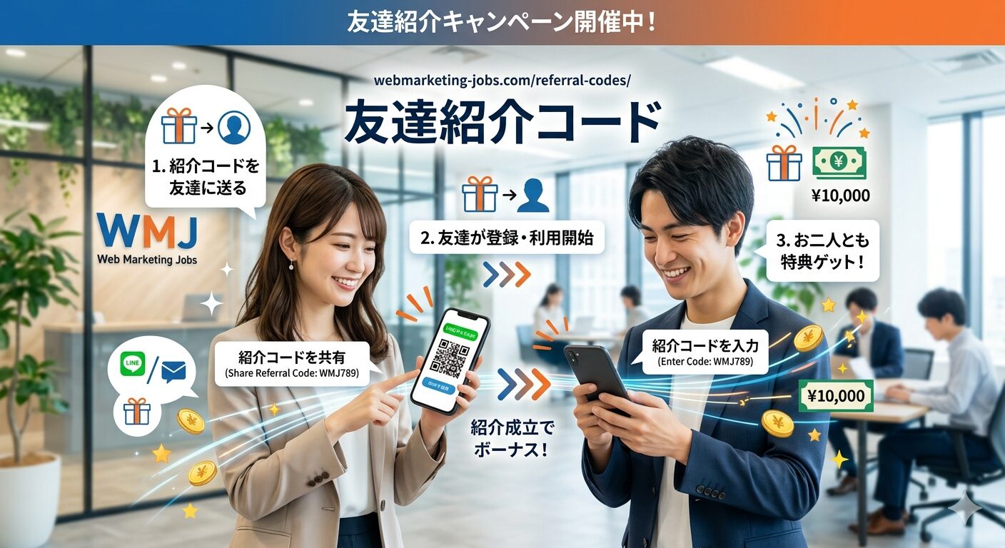 登録時にコードを入力すると、あなたにも特典がもらえます。ぜひご活用ください。